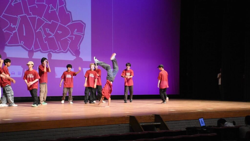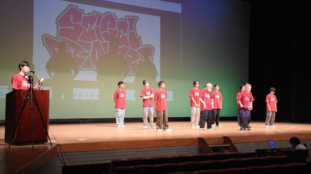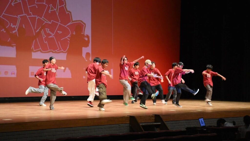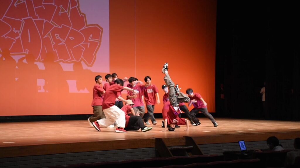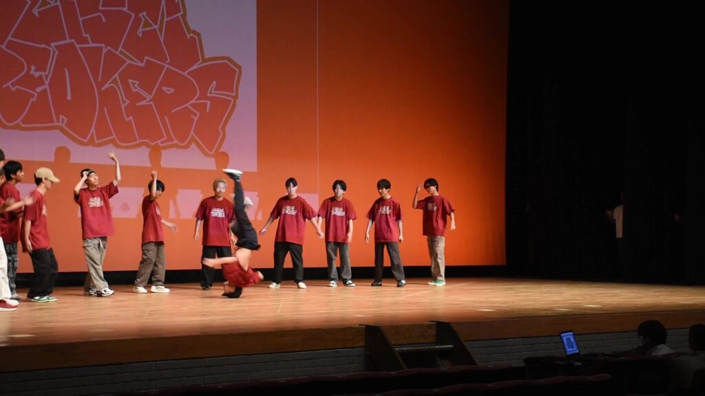 本校の部活動と同好会を代表して、ブレイクダンス同好会が華麗なパフォーマンスを披露しました。