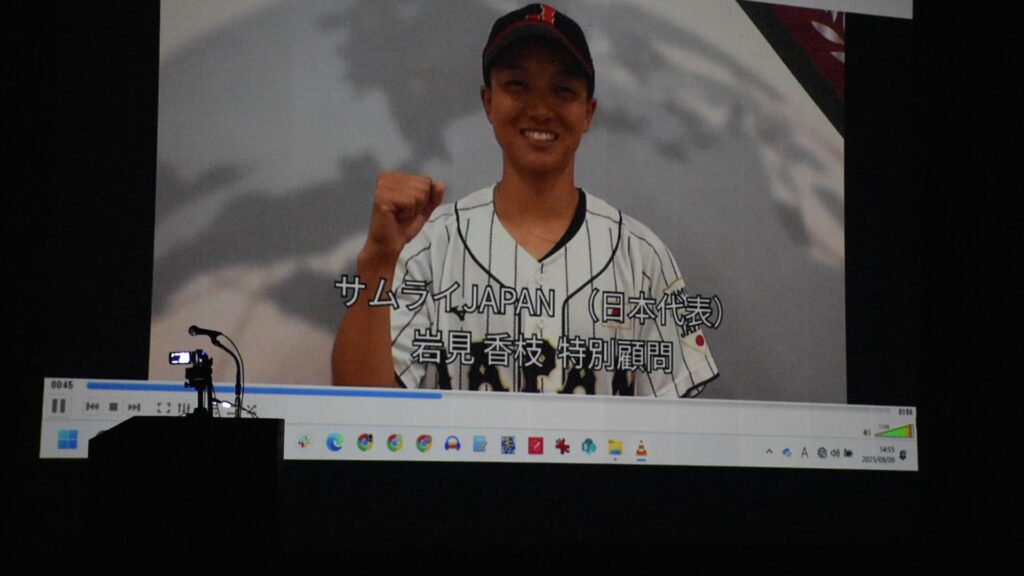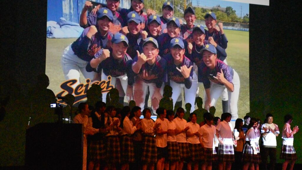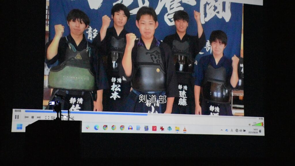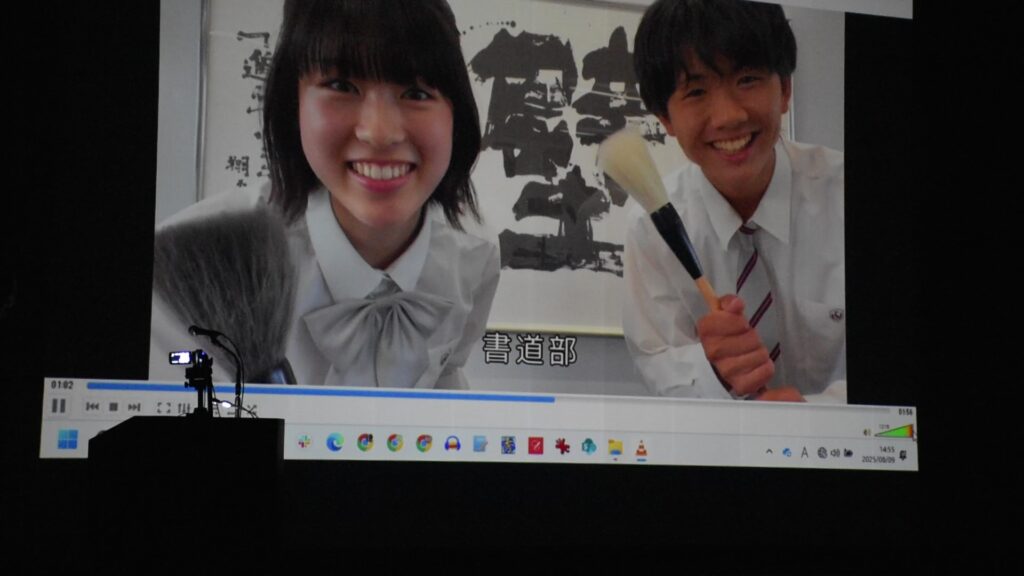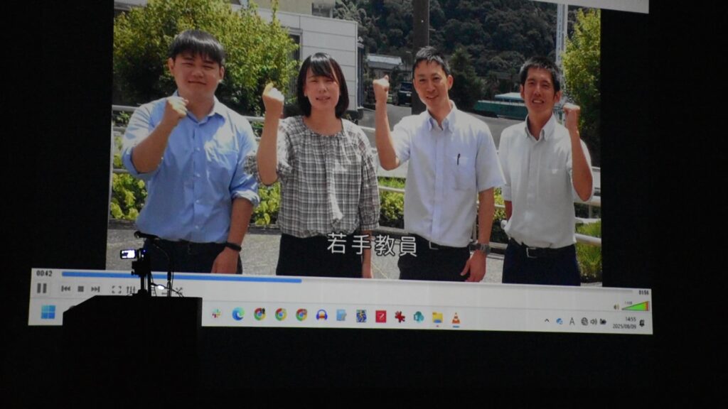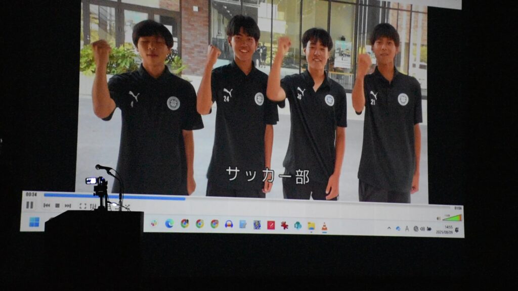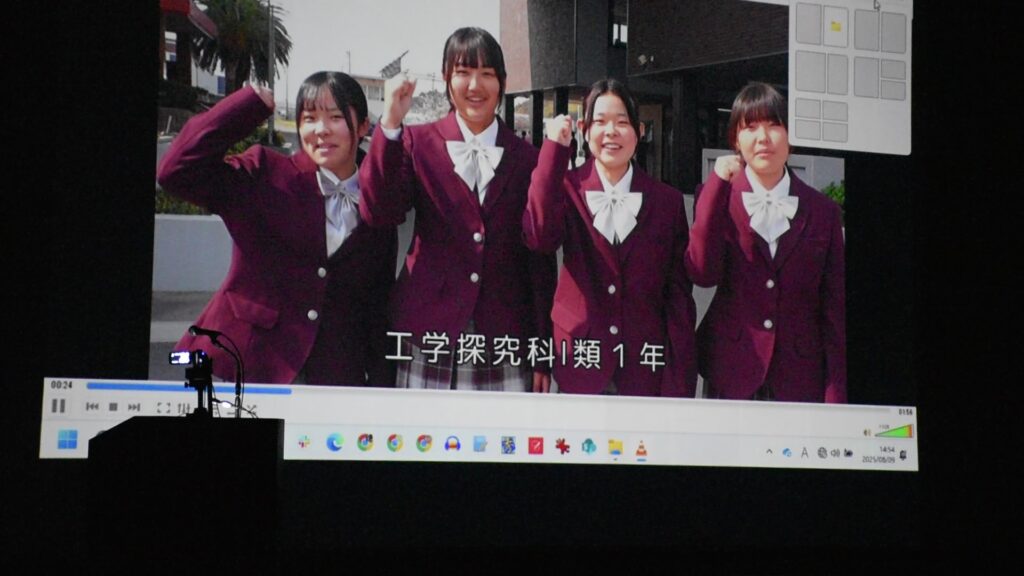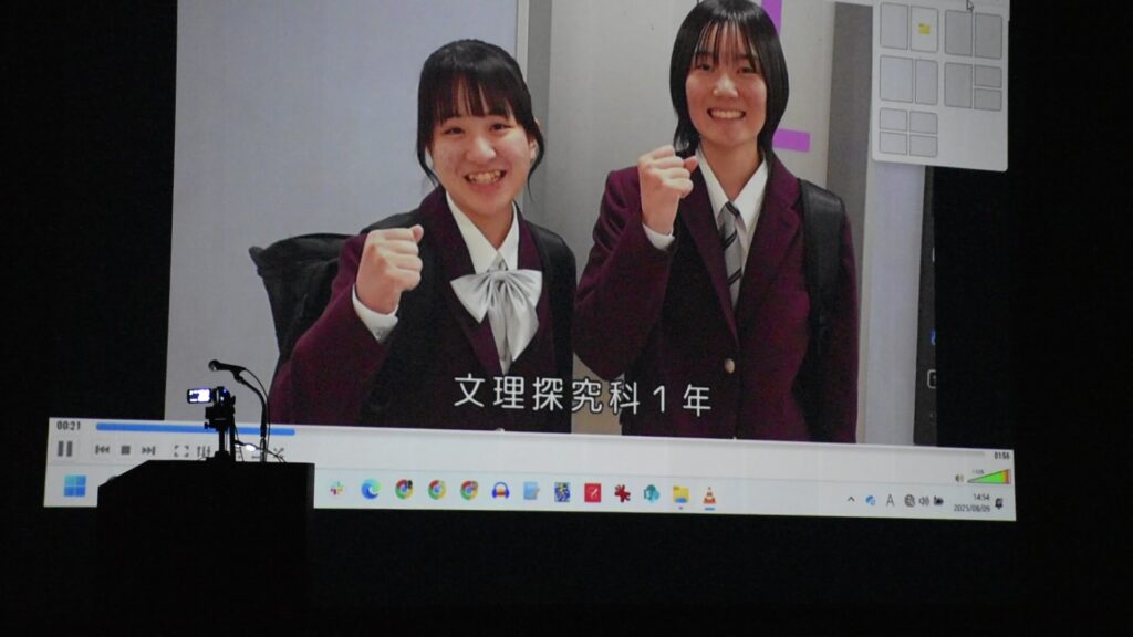 エンディング動画を流しながら説明に登場した生徒たちが壇上に並んでお礼の気持ちを伝えました。