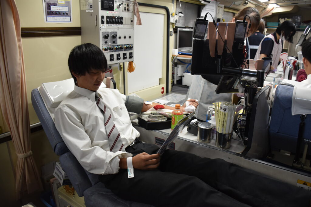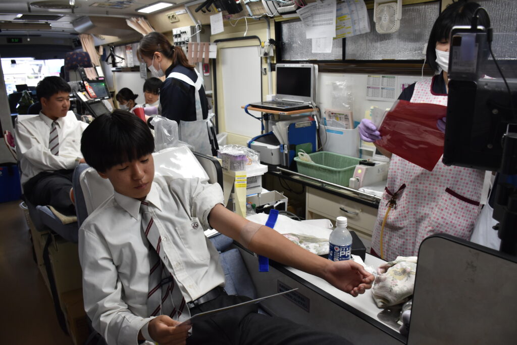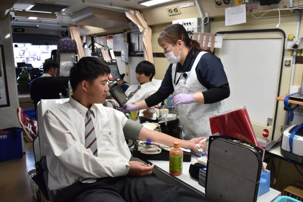 学校生活 2025年11月28日 【学校生活】学校献血を実施しました 学校献血を実施しました。高校生に献血を広めるための活動を行うボランティア「アボちゃんサポーター」の活躍もあり、多くの生徒、教職員が献血に協力しました。静岡県赤十字血液センター 献血バス