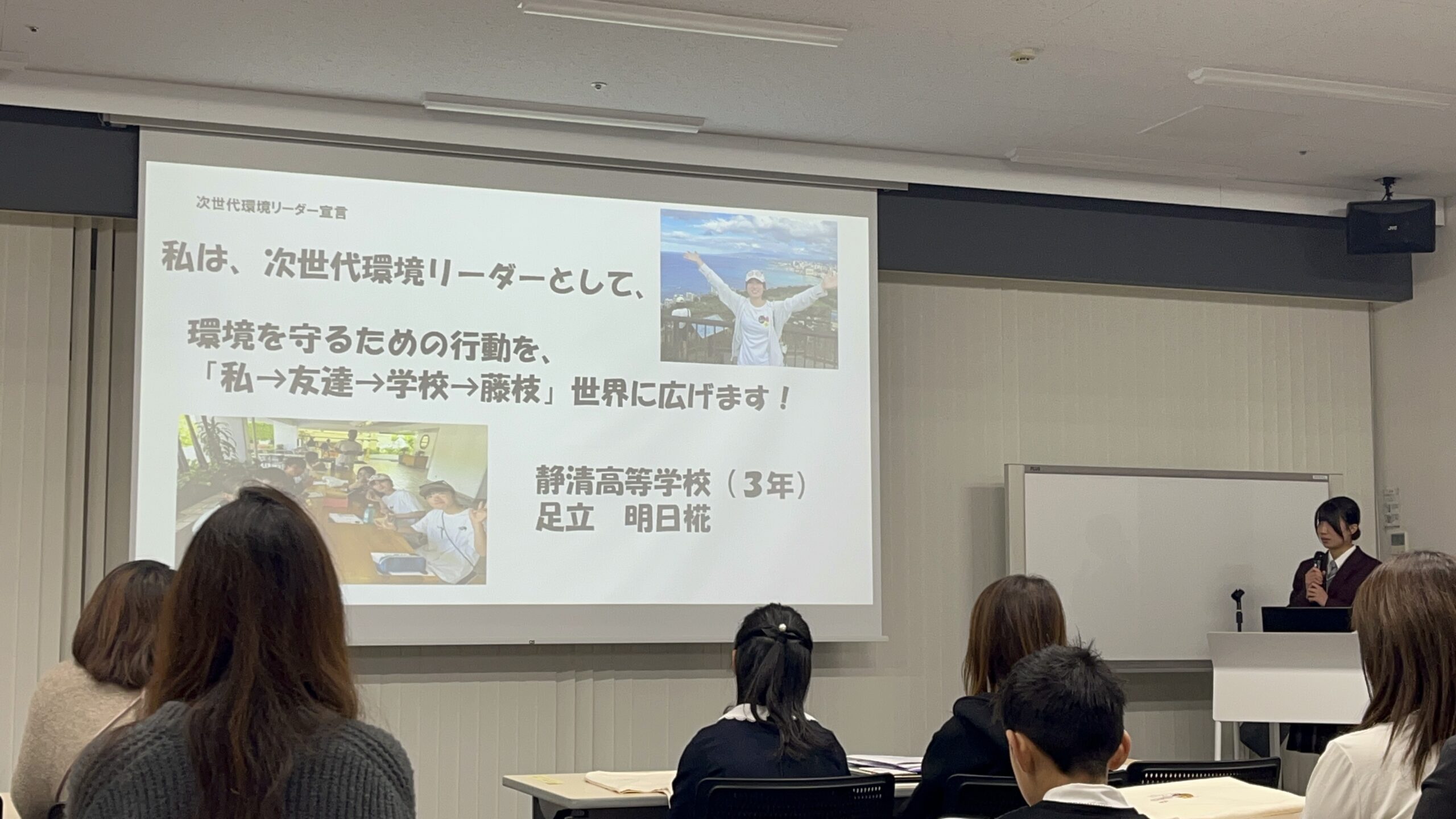藤枝市次世代環境リーダーとして8月にハワイ研修を行った足立明日椛さん(31HR・髙松中)が12月6日「藤枝市”もったいない”市民のつどい」にて研修発表を行いました。