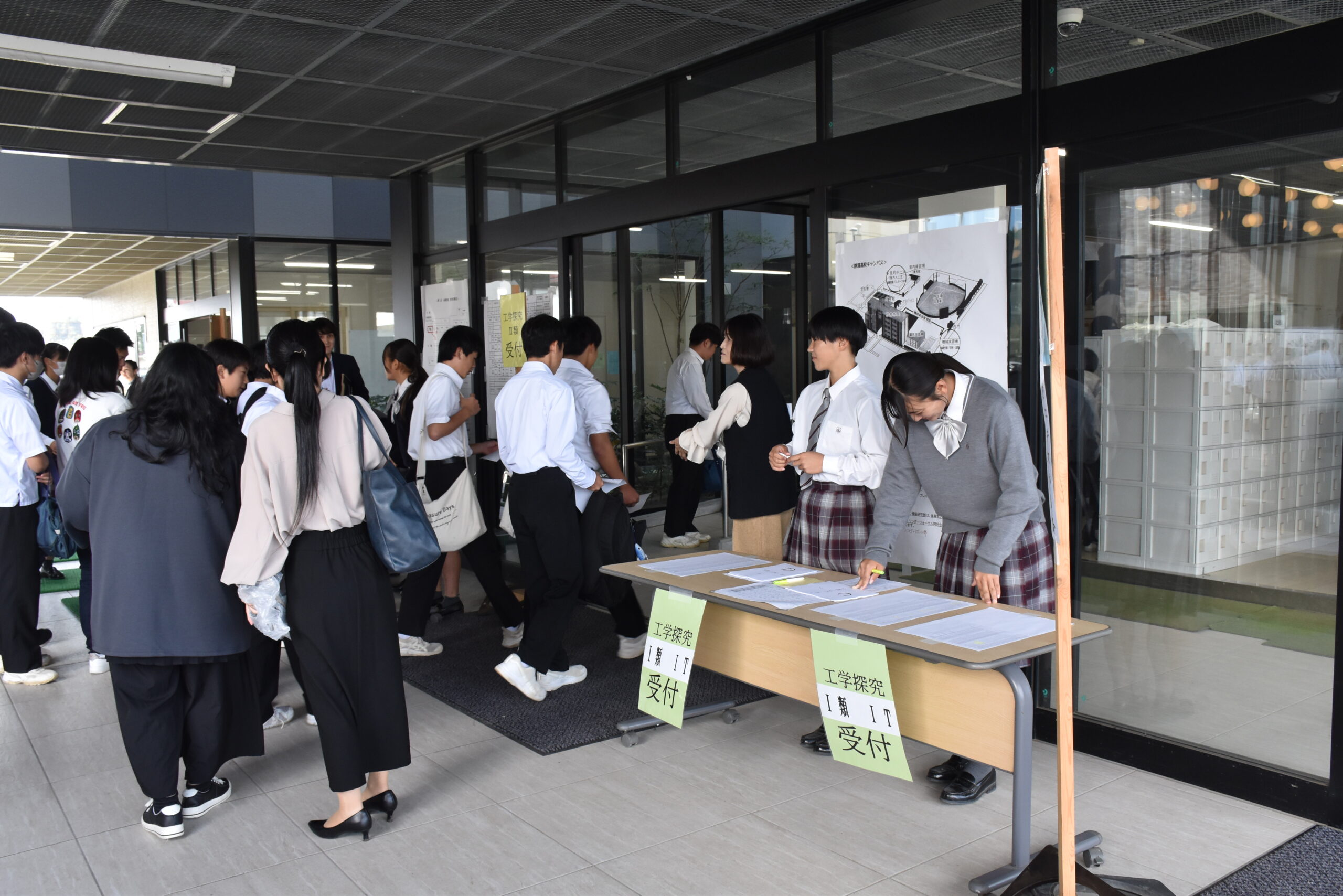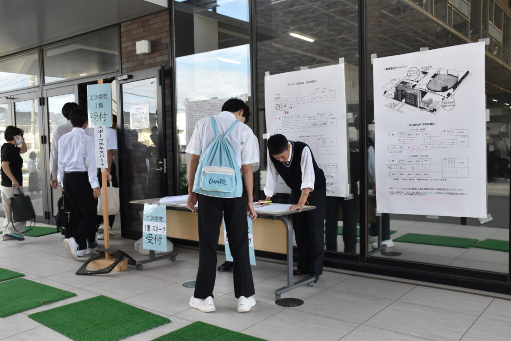 ①文理探究科、②工学探究科Ⅰ類、③工学探究科Ⅱ類などのブースを設けて、初めて本校を訪れた方々にもわかりやすくご案内しました。