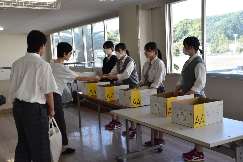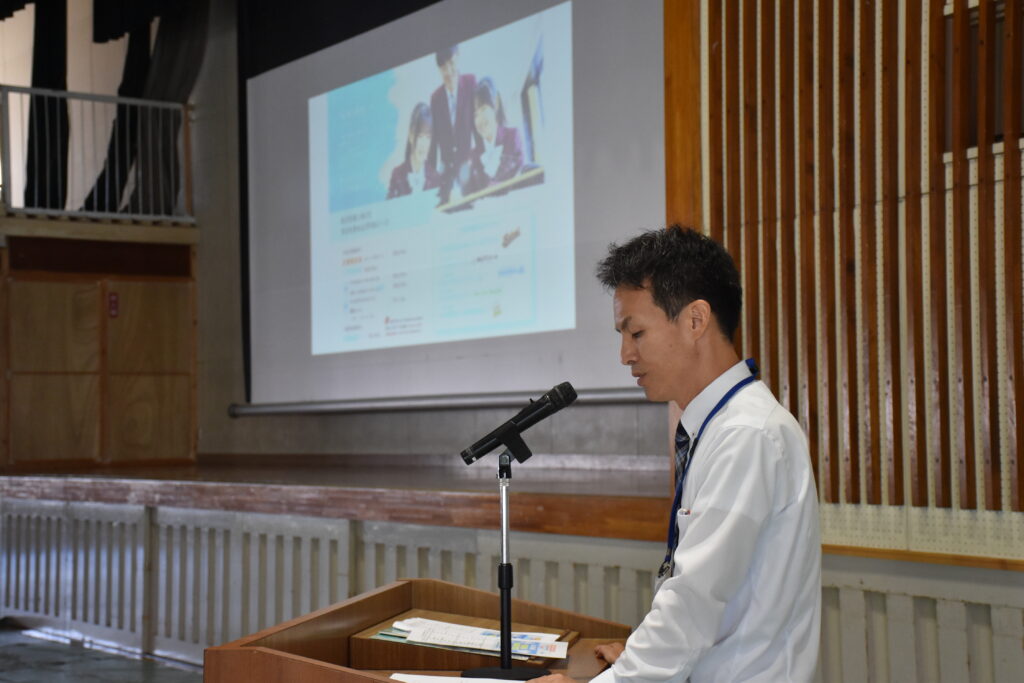 中学生は教室へ、保護者の方々は体育館に移動していただきました。