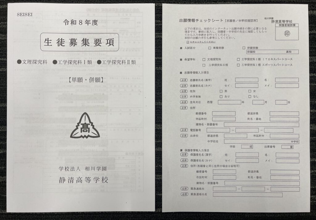 本校を受験する生徒さんは中学校の先生から配付されました「令和8年度生徒募集要項」を参照しながら、次のURLにアクセスして手続きを行ってください。