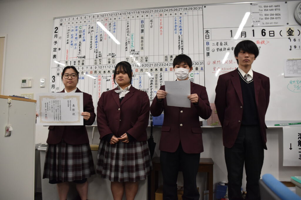 代表者生徒からは教師冥利に尽きる、大変ありがたい言葉もいただきました。