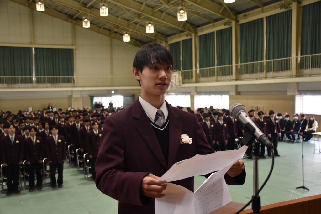 卒業生を代表して前生徒会長であった32HR河原崎悠斗さん(浜岡中)が答辞を述べました。